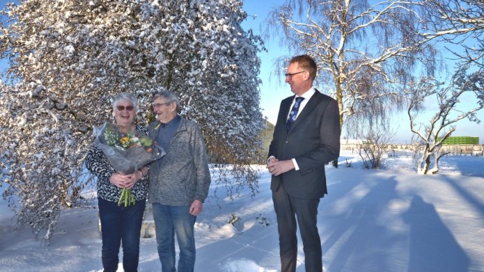 Locoburgemeester Gerrit Spelt brengt felicitatiebezoek aan 55-jarig bruidspaar van Midden-Pals uit Benschop
