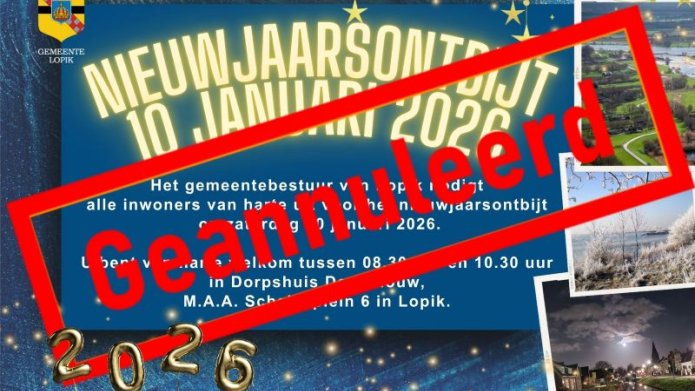 Nieuwjaarsontbijt geannuleerd en Nieuwjaarsgroet burgemeester Renate Westerlaken-Loos