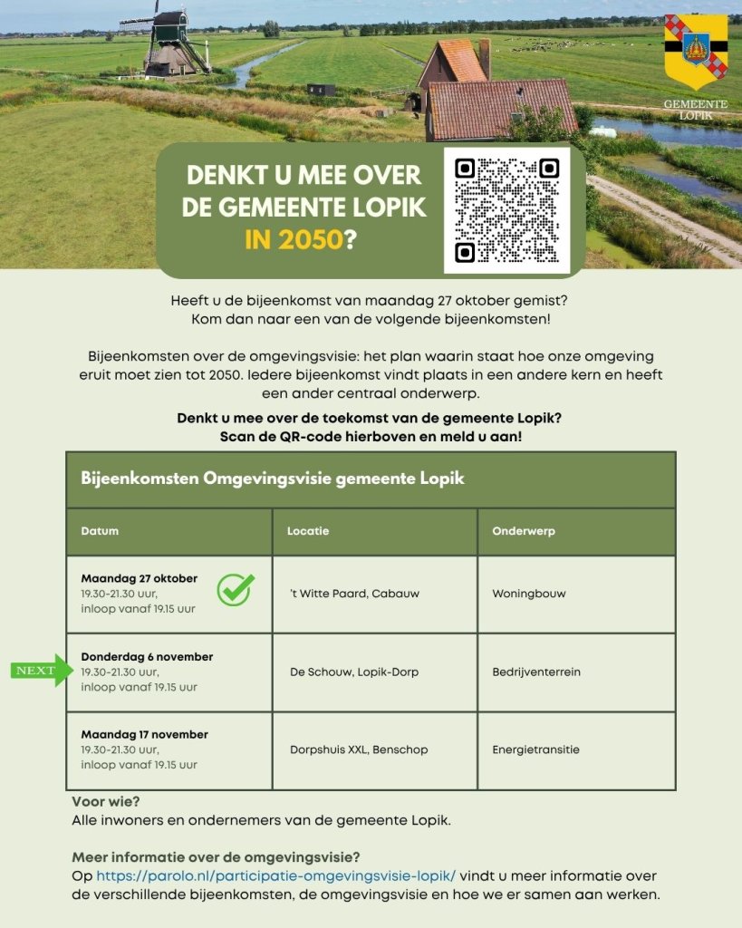 Iedereen is van harte welkom om mee te denken en ideeën te delen. Samen werken we aan een toekomstbestendig Lopik! Voor meer informatie kijk op: Participatie omgevingsvisie Lopik